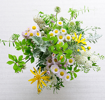 企業様や学校、お店、個人事業を営む方のオフィスなど、空間や行事に潤いと癒しをもたらし、そして、「おもてなし」のかたちを表現する。「花」はそんな役割を果たすことができます。私は、一人のつくり手として、そんな皆さまのお手伝いをしてまいりました。これからも、花を通して、さまざまな活動に関与してまいりたいと思います。